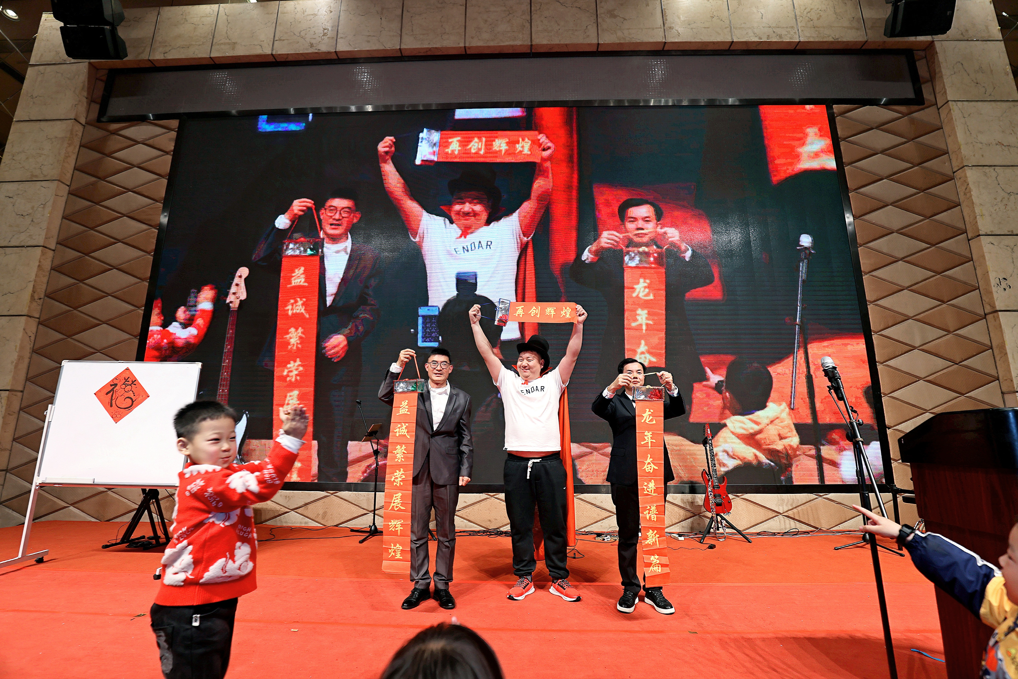 年会节目精彩纷呈,舞蹈、独唱、魔术、现场作画、模仿秀等节目接连上演、精彩不断,形式多样、内涵丰富,令人赏心悦目。乐队演奏引领的大合唱更将晚会推向高潮,全场晚会,热闹非凡,掌声、欢笑声不断,洋溢着欢乐和喜庆的气氛。
